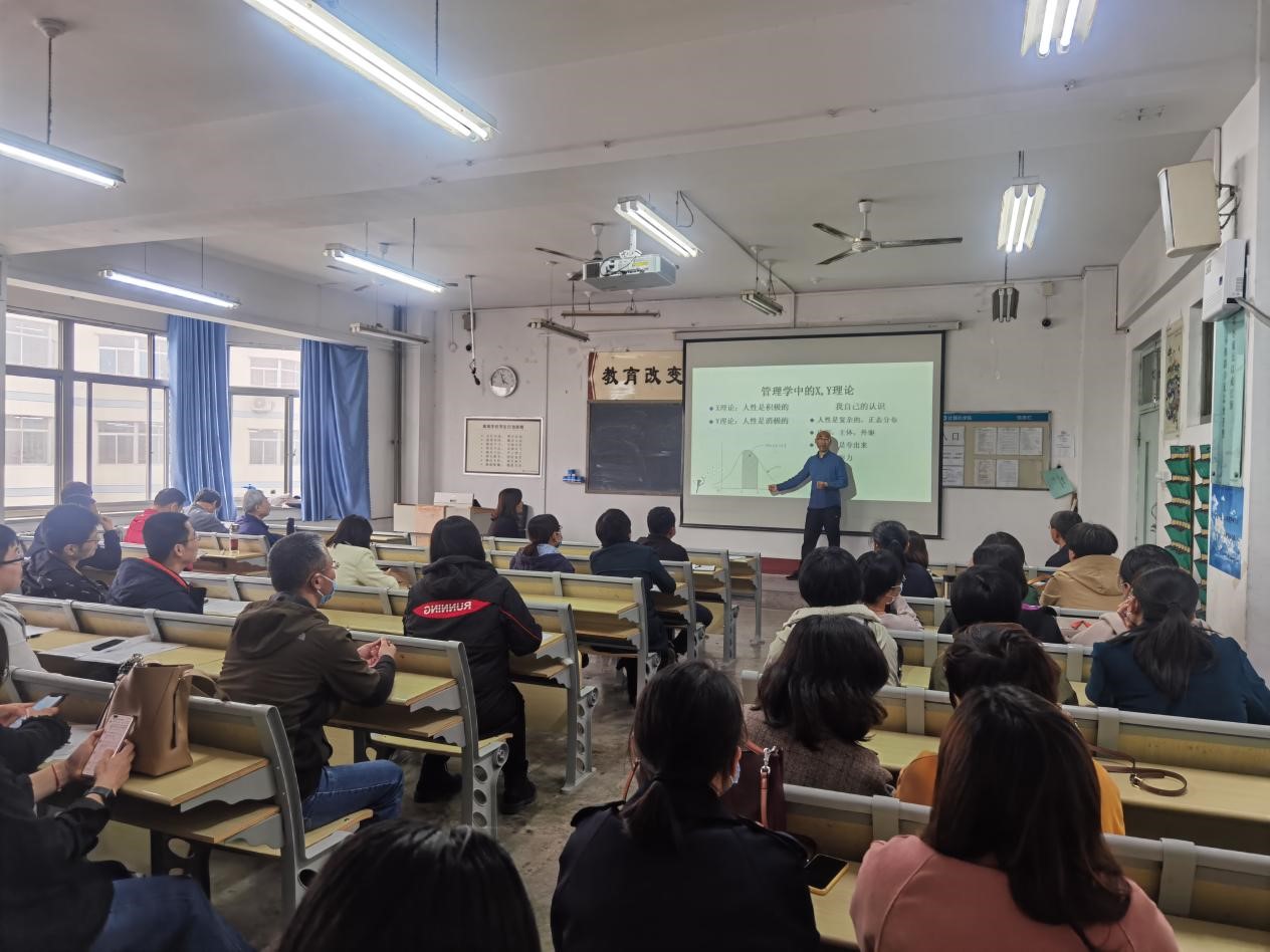 孟之天结合自身从教经历和教学实际,围绕高教产业的属性、员工思想特点、教师课堂教学三个方面进行了颇为生动的分享。他提到,高校教师要扮演好服务者和监督者的角色,就必须从员工思想特点和实际需要出发,换位思考,以包容的心态理解员工的局限性,通过制造学习需求,帮助员工掌握学习的方法和技巧,以实现就业或考研的目标需求。同时他运用管理学中的XY理论,生动形象的展示了如何通过制度设计,运用激励机制不断激发员工主动学习的内驱力。孟之天提出,要把握住课堂教学的机会,通过营造互动学习氛围、鼓励员工组团学习、用简单方法解答困难问题等几个实例小技巧,为老师们进一步改进课堂教学,明确自身授课风格特色提供了思考。