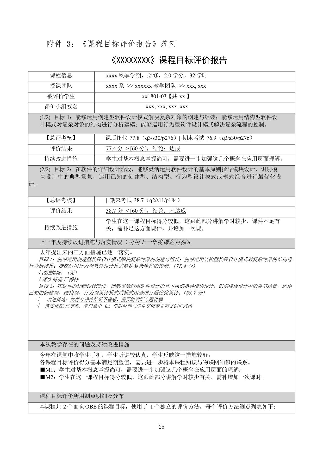 课程负责人撰写的《课程目标评价报告》需在课程组研讨会上讨论修改,重点讨论新的改进措施是否具备可实施性,并核实上一年度改进措施落实情况。最后,对新提出的改进措施由课程负责人签字承诺落实。