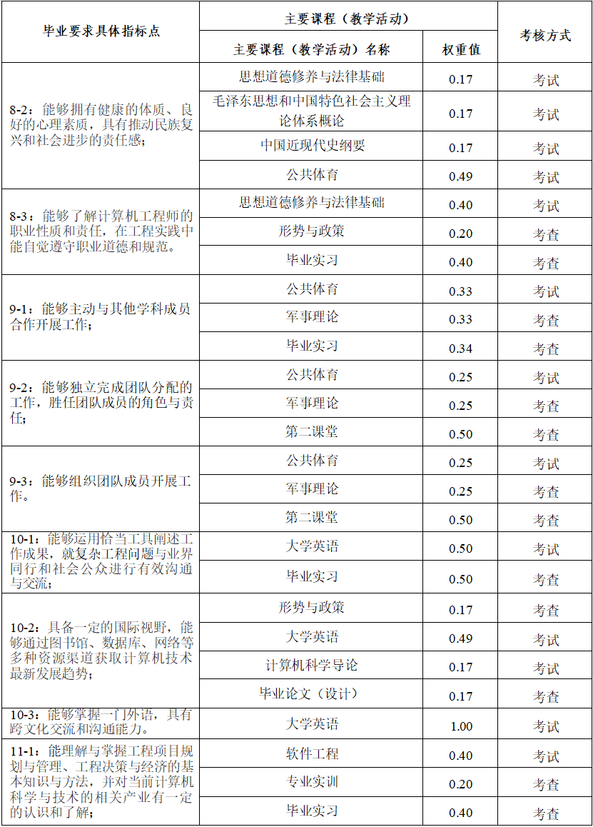 主要课程:高等数学、线性代数、概率论与数理统计、计算机科学导论、程序设计基础、数字逻辑、面向对象程序设计、电子技术基础、计算机组成原理、数据结构、Java 与面向对象技术、微机原理与接口技术、操作系统、离散数学、数据库原理与应用、计算机网络、软件工程、算法分析与设计、编译原理等。