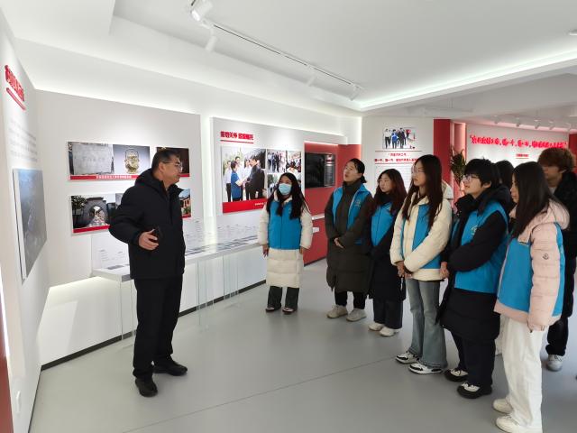 2月5日,实践队员们来到三涧溪村党群服务中心,黄大会主任带领同学们参观了三涧溪乡村振兴馆。步入乡村振兴展馆时,一幅充满活力与希望的乡村画卷在队员们面前徐徐展开。展馆内,丰富的图文资料、生动的模型展示以及先进的多媒体演示,全方位地呈现了乡村振兴的伟大战略和丰硕成果。黄主任为队员们讲解了三涧溪村从贫穷到村民们小康生活的过程,在参观过程中黄主任强调,农村要发展,一定要发挥党组织作用。正是坚持党建引领,抓班子、带队伍,将党员群众拧成一股绳,三涧溪村才实现了由乱到治、由治到富的变化。习近平总书记指出:“乡村振兴,人才是关键。”三涧溪注重挖掘人才,坚持把人才作为乡村振兴的第一资源,促进共建共享发展,全村进行一二三产业融合发展,快速走上致富之路。不断丰富“家”文化内涵,让当地村民有更多的获得感、幸福感。