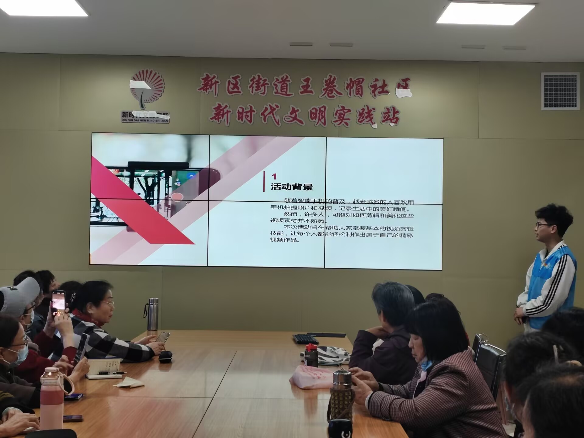 为积极响应国家适老化服务号召,推动数字技术普惠民生,3月28日,beat365亚洲体育官方网站格创计算机协会影音部落组走进王卷帽社区,成功开展"智享剪辑·助老筑梦"主题培训活动。