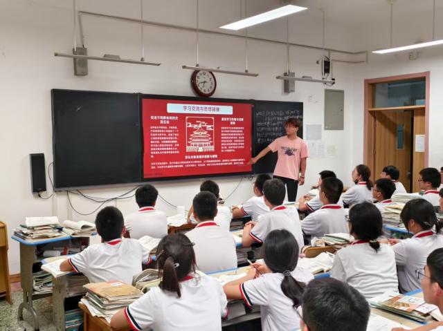 6月28日,实践队员们来到聊城市阳谷一中,为员工带来了精彩的理论宣讲,奏响了青春与思想共鸣的乐章。队员们紧紧围绕习近平新时代中国特色社会主义思想,以通俗易懂的语言和生动鲜活的案例,层层剖析这一科学思想的丰富内涵与重大意义。他们将深邃的理论转化为一个个贴近生活、深入浅出的故事,让在场的同学们能够轻松理解与接受。队员们还结合习近平总书记对青年员工的殷切寄语,分享了自己的学习感悟与体会。他们以自身的思考与成长为切入点,引导青少年树立坚定的理想信念,勇担时代赋予的使命。宣讲过程中,队员们注重互动交流,巧妙地采用提问、讨论等方式,点燃了同学们的参与热情。同学们纷纷踊跃发言,就自己关心的话题与队员们展开深入探讨。思想的火花在互动中不断碰撞,现场气氛热烈而融洽。