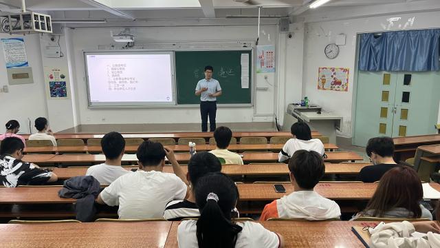 在进行了简单的自我介绍后,韦福龙首先对国考、省考、选调、事业编、人才优选、三支一扶等公职类考试的近几年的相关政策进行了解读,向同学们介绍了考试的基本信息、报考基本条件以及报考流程,并提醒同学们可以多维度考虑,通过多种途径进入公职岗位。韦福龙以2022届高校毕业生就业情况和规模为切入点,紧紧围绕当前社会形势,结合自身经验,对未来的就业趋势进行精准预测和分析,并结合不同专业的招录情况,提出合理建议。同时,对于公职类考试类型中最多人报考、最受欢迎的公务员考试,他做了进一步介绍。结合2023年报名与录取比例的具体数据让员工更为直观地了解到公务员考试的竞争压力,并且通过试做考试真题带领同学们了解公职类考试中的基本题型。随后他又对公职类考试命题规律和特点进行了详细的介绍,对如何进行科学备考进行了针对性的指导,给出一些备考建议,有助于同学们提前高效掌握考试做题技巧,帮助大家更快进入备考状态,提高学习效率。