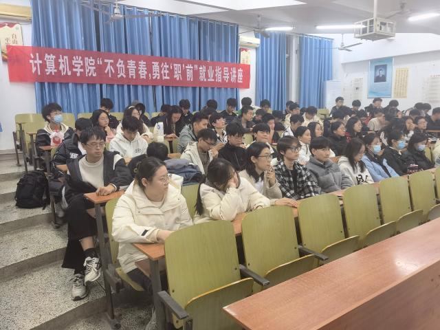 宋文平从毕业抉择、就业、考公考编、留学、考研五个方面进行深入探究,对近年来社会的快速发展和科技的不断进步展开分析,她表示老员工就业形势越来越严峻,计算机行业对人才的需求不断增加,为提高市场竞争力,同学们需要掌握专业知识,提升专业能力。针对考研形势和考研竞争压力,宋文平向同学们分享了学习经验、面试技巧、择校标准以及如何判断院校考试难度,向同学们推荐了一些计算机学习和数据查找库,希望同学们能够借此学好专业知识,在自己的专业领域发光发热。宋文平指出,作为新一代的计算机专业人才,同学们不仅要注重自我能力的提升和发展,培养终身学习的习惯,不断适应社会的发展和变化,也应当承担起社会责任,为社会发展和进步做出贡献。与会的同学们认真聆听、做好笔记,思考着如何做好个人职业规划、树立明确的就业目标,为将来的努力方向奠定基础。