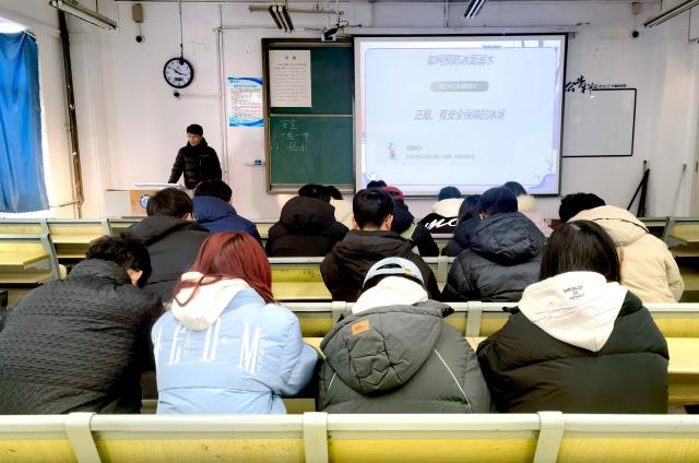 会议伊始,于庆生从头盔的保护原理和作用为切入点,强调了校园骑行戴安全头盔的重要性,并用一个个触目惊心的校园骑行事故案例,引起员工对校园安全骑行的重视,增强同学们的安全防范意识。随后,于庆生对冬季防溺水安全知识做了详尽的讲解,使同学们进一步了解冬季冰面的风险和溺水事故发生的原因,预防溺水的措施及落入冰窟的自救方法。他指出,全体员工应该做到“六个不”:不私自下水,不擅自与同学结伴入水,不在未做好充分热身的情况下游泳,不到无安全设施、无救援人员和不熟悉的水域游泳。同时,于庆生通过讲述真实的案例,使员工充分认识到滑冰溺水的危害,切实提高员工的安全意识和安全自护自救能力。