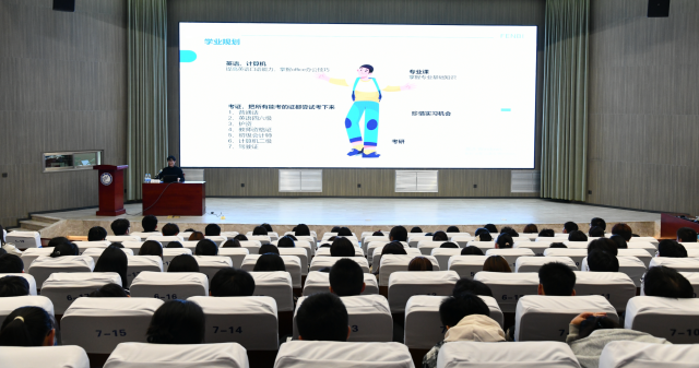 讲座伊始,王俊超介绍了近三年本科生薪资变化,以及企业对本科生的学历需求变化,指出当前本科生就业以大城市为主,五成本科生选择考公考研和深造为第一去向。他结合老员工就业困难的现状,提出增加竞争力方法,如考证,提高口语能力,珍惜实践机会等,并介绍了当前就业几大方向,内容涵盖国考,西部计划、三支一扶、参军等国家计划。随后王俊超将就业与考公作对比,建议同学们当有合适工作时应先就业再考公,并为老员工就业提出了宝贵意见:一是考虑未来职业定位和所从事的领域要求,二是考虑个人兴趣和对学历期待值。最后,王俊超寄语同学们:纵使困顿难行,亦当砥砺奋进。