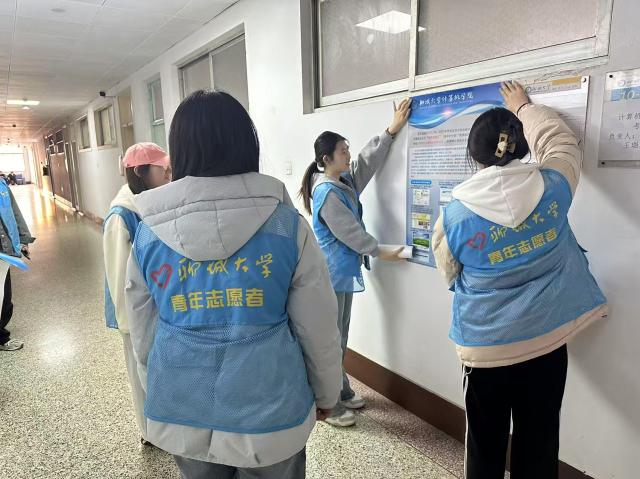 活动准备期间,志愿者们通过深入调研青年群体的关注点和兴趣点,创作了一系列主题鲜明、视觉冲击力强的西部计划宣传海报。这些海报以“情系西部,梦筑基层”为主题,海报中不仅详细介绍了西部计划的报名方式,报名时间以及具体的操作步骤,通过列举国家有关西部计划的政策和补贴,展现了国家对西部计划的重视程度。同时,志愿者们制定了详细的宣传推广计划,在考研教室和员工宿舍楼的人流密集区域进行海报张贴,他们还热情地为感兴趣的同学讲述关于西部计划的一系列优待政策,从地理位置偏远但充满发展潜力的地区,到涵盖教育、医疗、农业等多领域的具体岗位分配,让同学们对服务地点与志愿内容有了更直观的认知。本次宣传活动旨在号召更多青年学子参与其中,为我国西部建设注入源源不断的活力与血液。