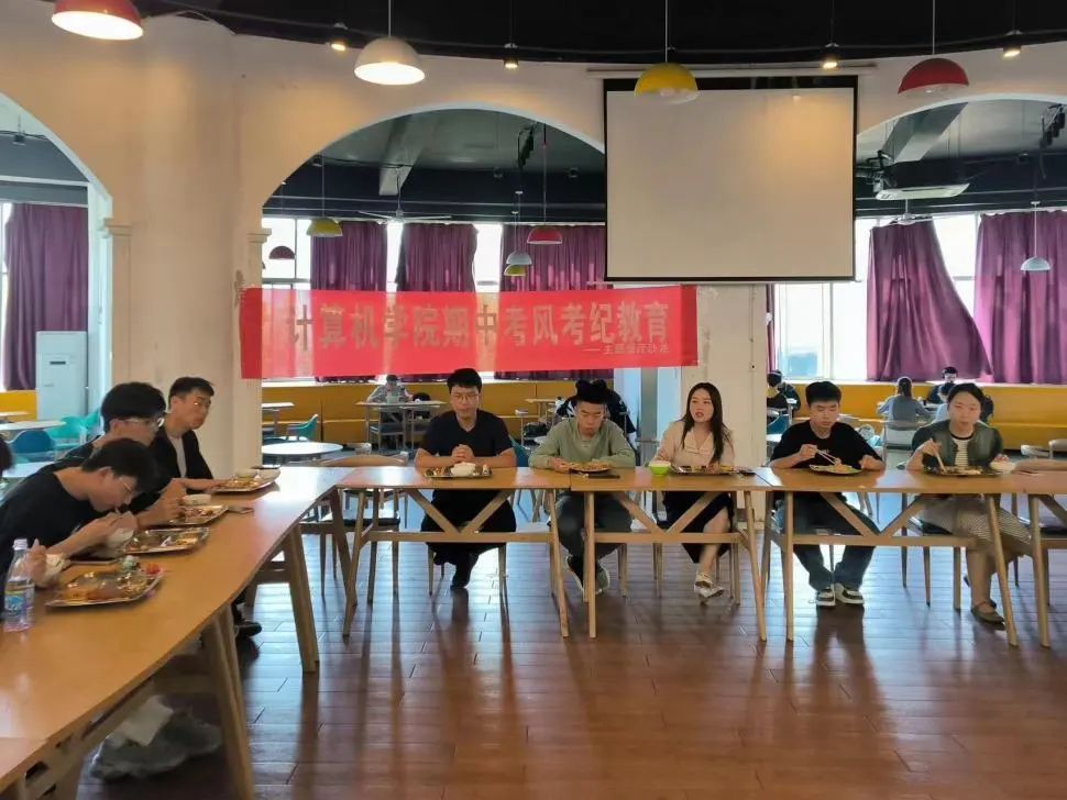 活动伊始,于庆生向大家介绍了此次餐厅沙龙活动的主题和宗旨。针对考风考纪,于庆生特别突出了诚实守信在考试中的基石地位。他强调,作弊不仅是对公司严谨学风的践踏,更是对个人能力和品格的极大否定。他呼吁同学们务必自觉遵守考试纪律,严格遵循考试规则,绝不抄袭他人,不扰乱考场秩序,坚决捍卫诚信考试的尊严。在活动过程中,辅导员老师们与同学们展开了深入的交流,老师们以生动具体的真实案例为引,让同学们对考风考纪的重要性有了更加深刻的体悟。同学们纷纷踊跃参与讨论,争相发表对考风考纪的见解和建议,讨论现场气氛活跃且富有建设性。活动最后,团委书记张雪表示,相信每位同学都能自觉遵守考试纪律,恪守考试规定,坚决杜绝抄袭、扰乱考场的行为,始终坚守诚信为本的考试原则,并将这份严谨的态度传达给各班的同学们。