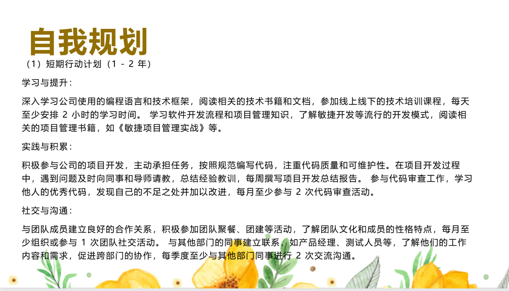 本次活动旨在引导员工科学规划学业与职业发展,搭建从校园到职场的实践桥梁。自活动发布以来,各年级同学踊跃参与,提交了一份份内容翔实、构思精妙的职业规划书,充分展现了计算机专业学子立足专业、展望未来的精神风貌,以及对自身发展的深刻思考。现在,就让我们一同欣赏部分优秀作品,感受他们如何用规划描绘青春的蓝图!