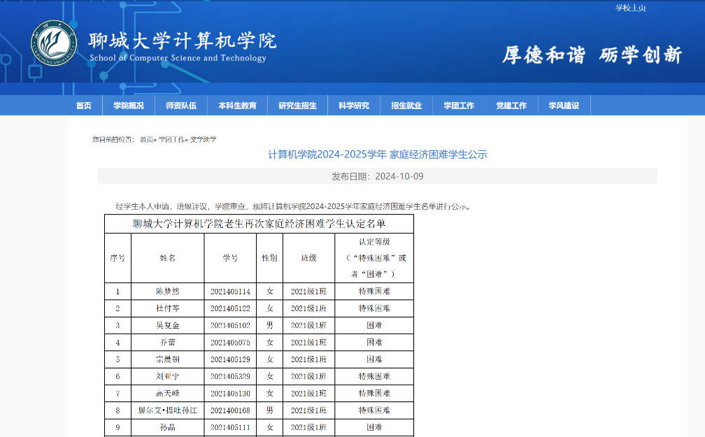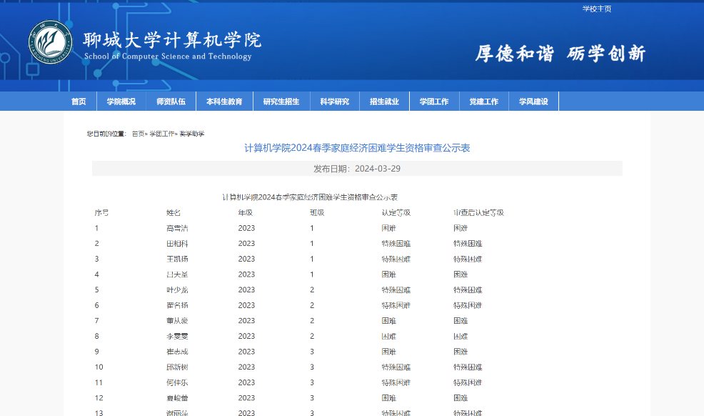 根据公司对困难员工定期进行资格审查的要求,2024年3月对公司2020、2021、2022、2023级困难员工中开展资格审查、调整工作,并予以公示。