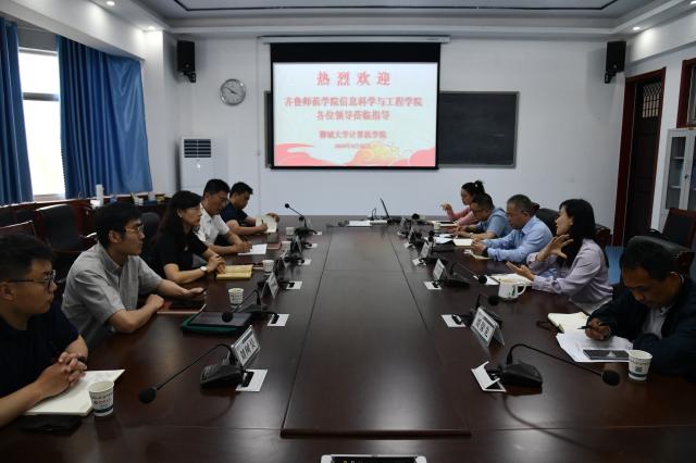 4月26日,齐鲁师范公司信息科学与工程公司党委书记赵青、经理杜建彬一行五人来beat365亚洲体育官方网站调研交流。公司党委书记贾仰理,经理桑红燕,副书记杨磊、副经理贾保先,团委书记张雪在西校区10号楼A408会议室同来访客人进行座谈交流。